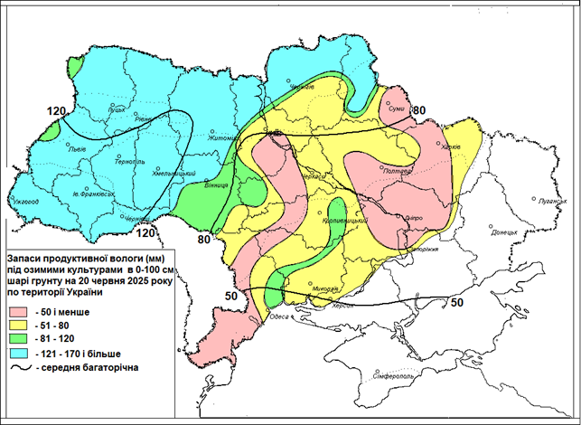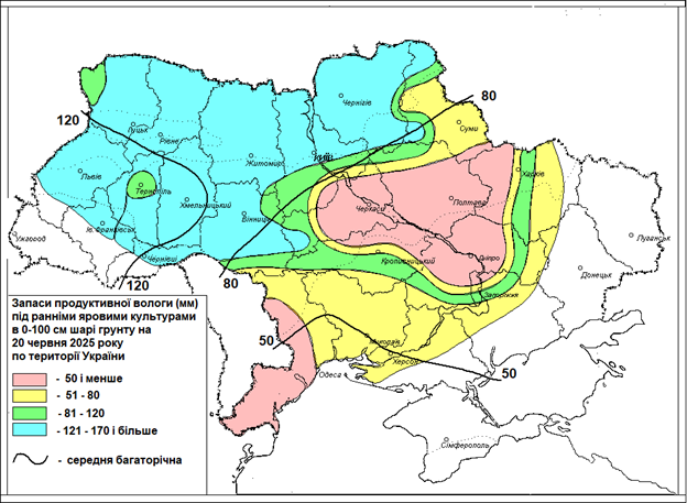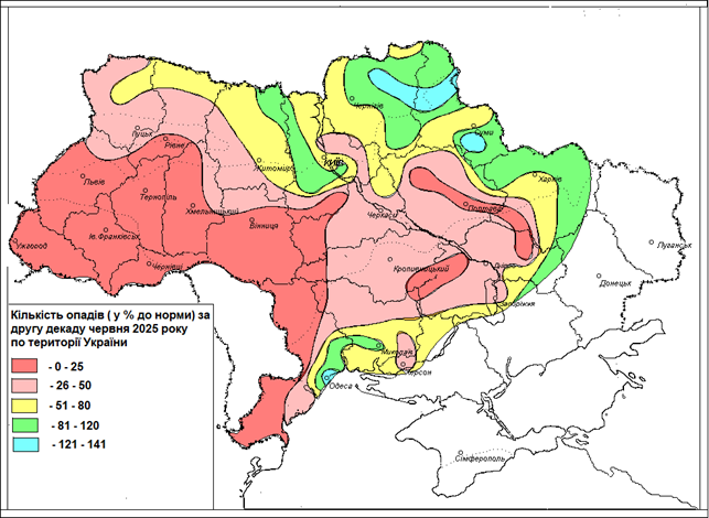 Опади та запаси продуктивної вологи грунту за другу декаду червня 2025 року