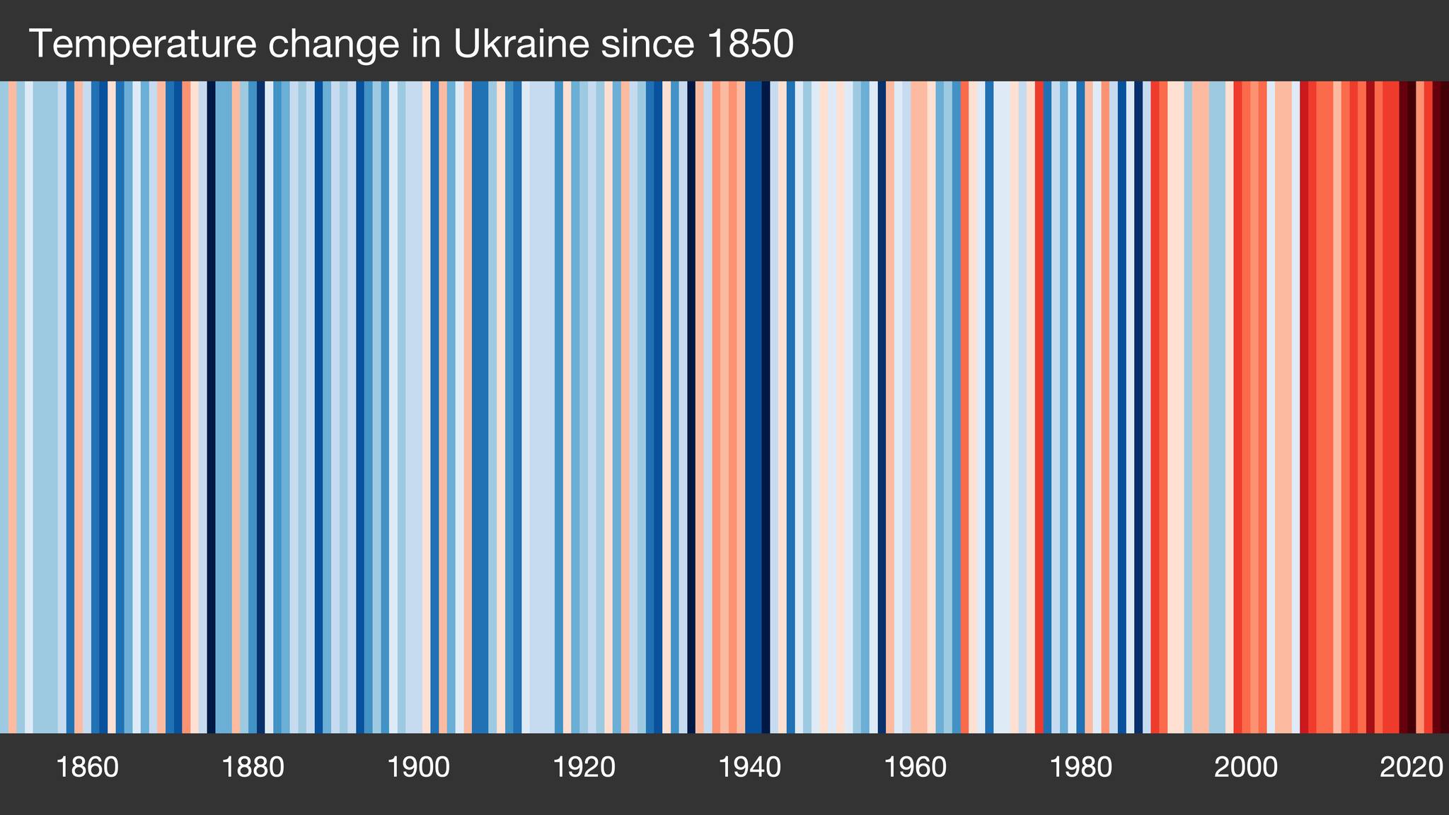 21 червня — день, коли у світі показують кліматичні смуги. Це проста візуалізація змін температури: кожна смуга — один рік, колір — від холодного